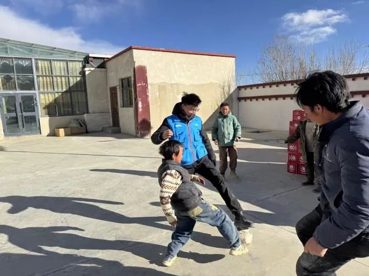 今天咱们小组拜访了定日县的三个村子,际遇许多小一又友。他们大多很害羞,但全部玩转眼之后,就飞速地把志愿者们看成一又友了。在努措村,几个孩子正喧闹着踢着足球,志愿者小汪加入以后他们踢得更辛苦了。莫得固定的地方,跑到那处踢到那处,高原上处处王人是他们的足球场。