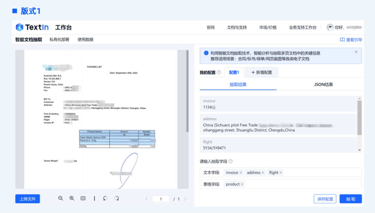 图:合合信息TextIn智能文档抽取平台开动欺压